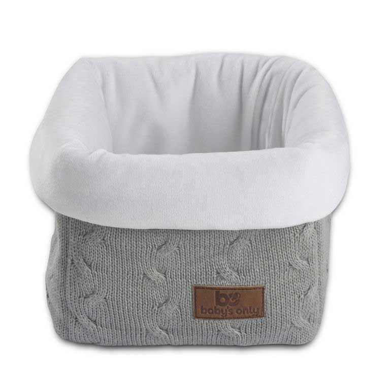 Mandje van Baby's Only met aan de buitenkant het mooie gebreide kabel patroon en aan de binnenkant een zachte velours stof. Erg mooi om samen met de andere baby's only producten in hetzelfde kabelpatroon te combineren zoals een deken of een waskussenhoes.