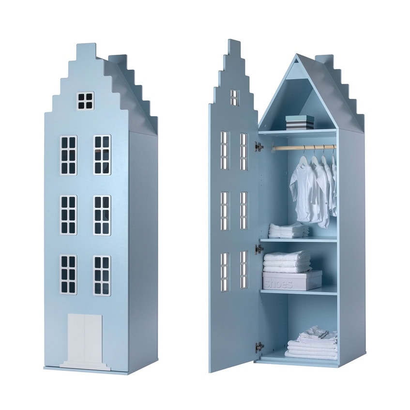 Creëer je eigen unieke Amsterdamse straat door meerdere kasten te combineren. Deze multifunctionele designkast groeit mee met je kind. Of je hem nu in de kinderkamer, slaapkamer of woonkamer plaatst, deze originele kast zal zeker de aandacht trekken.
