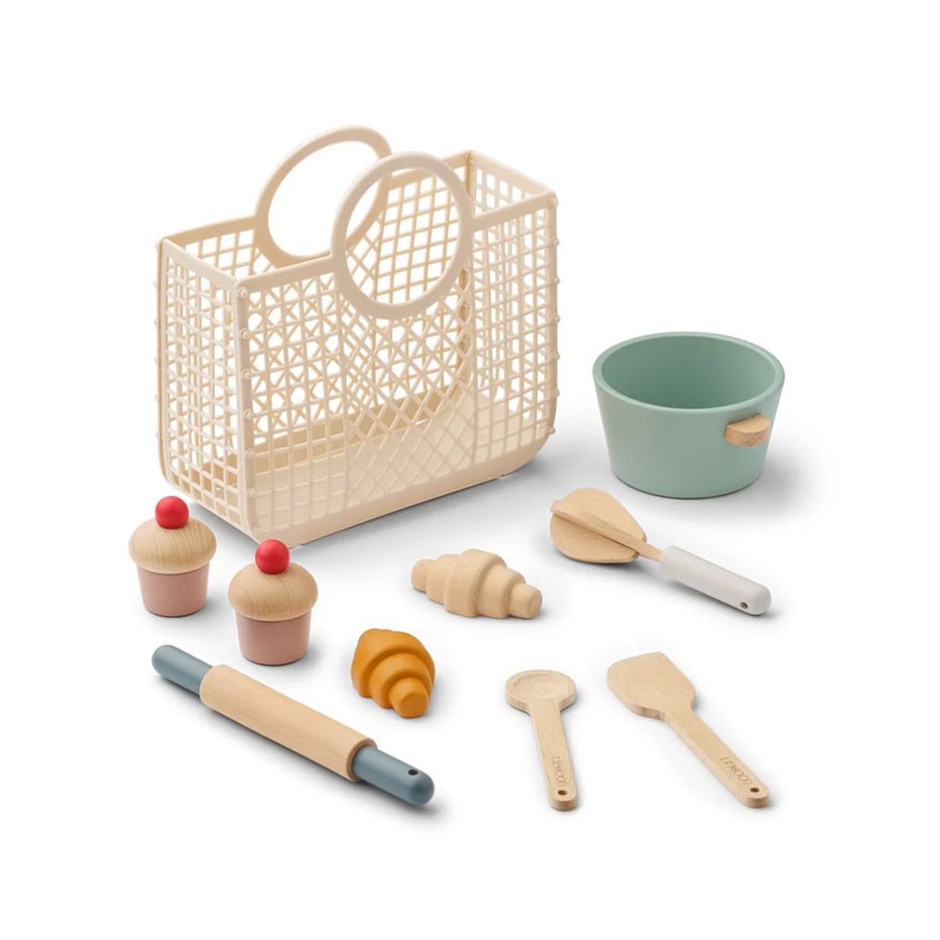 Liewood Lisbeth houten bak speelgoedset in mandje – Sandy multi mix