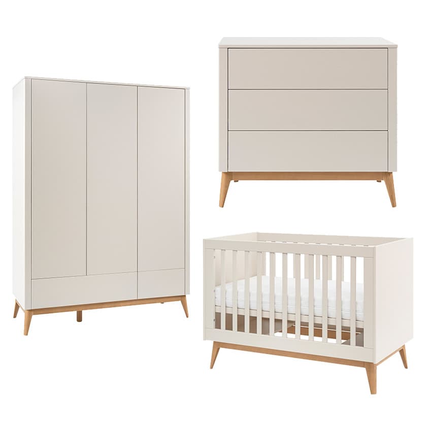 De Pinio Seth babykamer 3-deurs is een stijlvolle, complete en praktische kamer voor de eerste jaren van je kindje. Deze set bestaat uit een ledikant 60×120 cm met verstelbare bodem en uitneembare spijlen, een ruime commode met 3 laden en een functionele 3-deurs kledingkast met volop opbergruimte. Dankzij het tijdloze ontwerp en de neutrale kleuren past de Seth-serie in elke babykamer. De meubels zijn gemaakt van duurzame materialen en afgewerkt met oog voor detail – perfect voor ouders die kiezen voor kwaliteit en gemak.Wat zit er in deze set?
