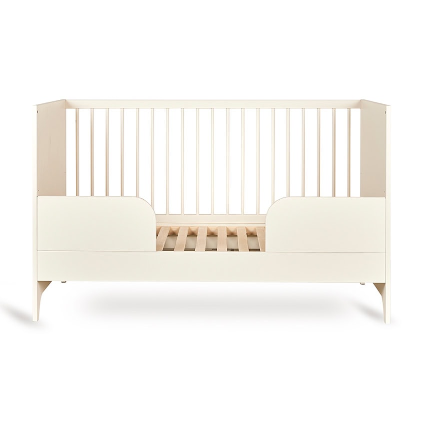 Het bedje groeit vanzelf mee met je kleintje en verander je eenvoudig tot een half-open peuterbedje door één van de spijlerzijdes te vervangen door de meegeleverde uitvalbeschermer. Deze sluit naadloos aan op het bedframe en zorgt voor extra veiligheid zonder afbreuk te doen aan de lichte, stijlvolle uitstraling van de Tsugi collectie.Quax Tsugi doorgroeibed 70×140 cm – Butter