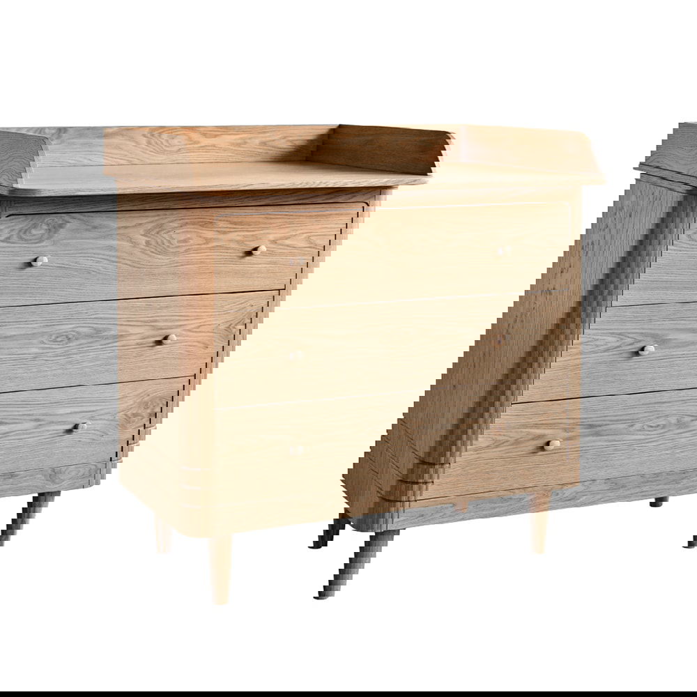De extensie is speciaal ontworpen om naadloos bij de ladekast van We Are Bitte te passen. De extensie is ook voorzien van een combinatie massief eikenhout en fineer, net zoals bij het ladekastje. De neutrale kleur maakt het gemakkelijk om de commode af te stylen met een mooi aankleedkussen en een mooi aankleedkussenhoes.